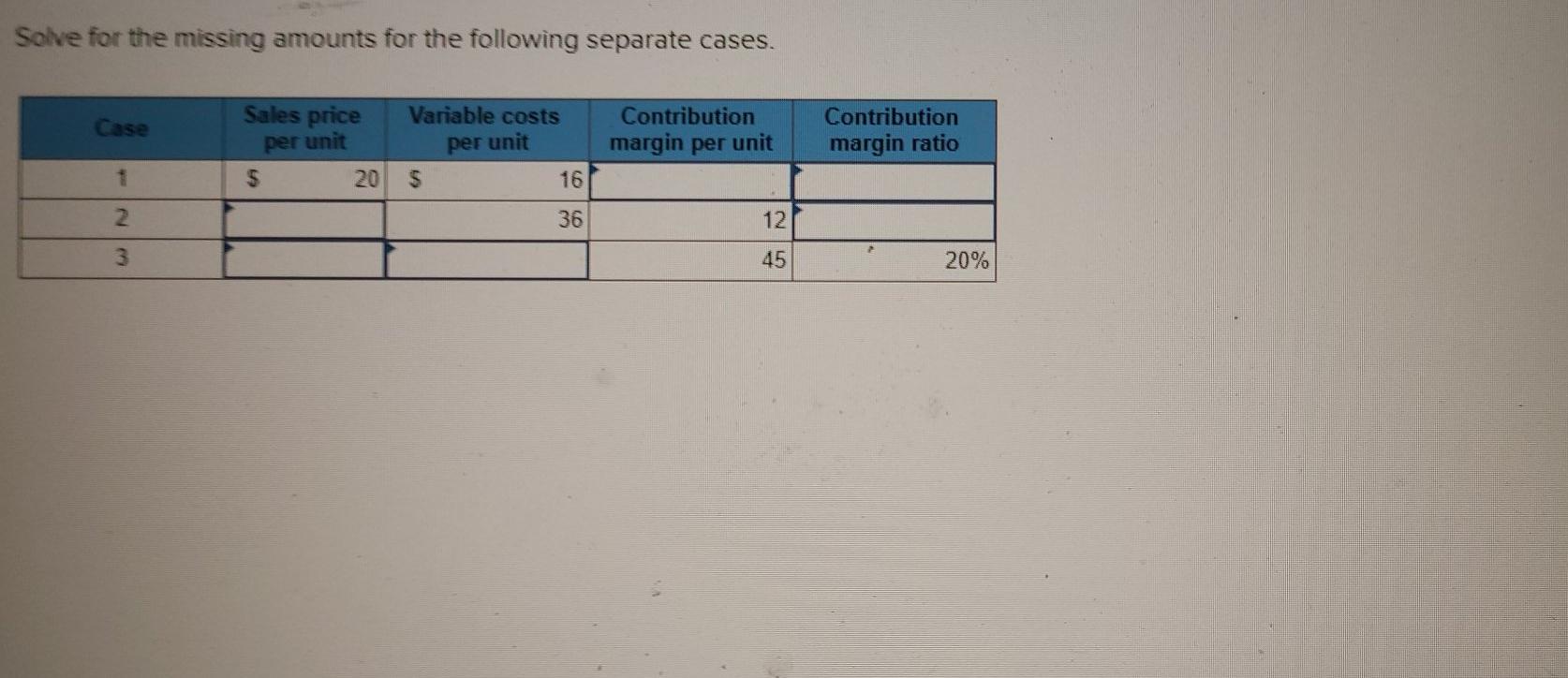 Solved Solve For The Missing Amounts For The Following Chegg Com